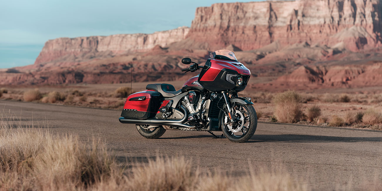 Das Indian Challenger 125 Jahre Jubiläumsmodell beweist, dass Leistungsführerschaft keine Theorie ist, sondern sich in der Geschwindigkeit zeigt. Ihre am Rahmen montierte Verkleidung, die schwarzen Oberflächen und der flüssigkeitsgekühlte PowerPlus-Motor mit 112 Cubic-Inch Hubraum werden durch sorgfältig handgemalte Details und 125 Jahre Jubiläums-Embleme ergänzt.