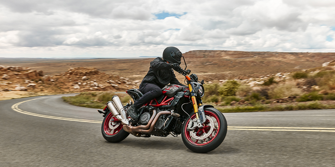 Egal ob Cruisen oder Beschleunigen, der kraftvolle Motor der FTR akzentuiert den Stil des Motorrads perfekt. Dreh die Lautsprecher voll auf!